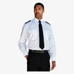 65% polyester, 35% coton, popeline simple. 2 poches avant boutonnées et emplacement stylo sur côté gauche.Poignets boutonnés. Galons non fournis. Entretien facile.