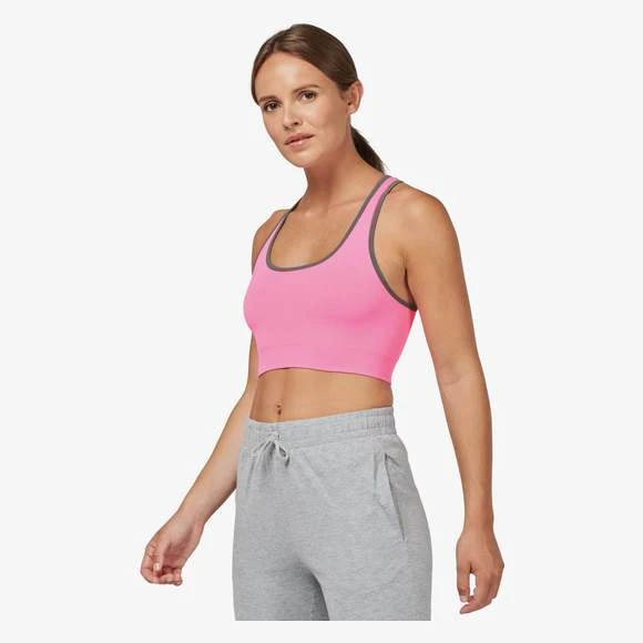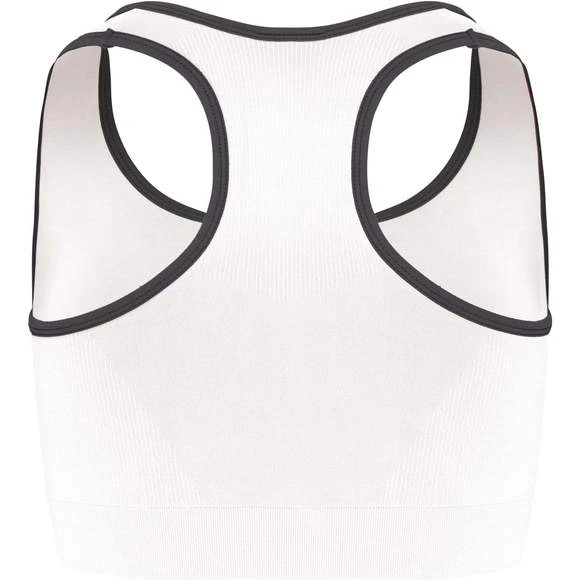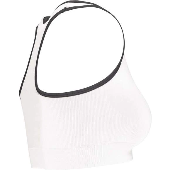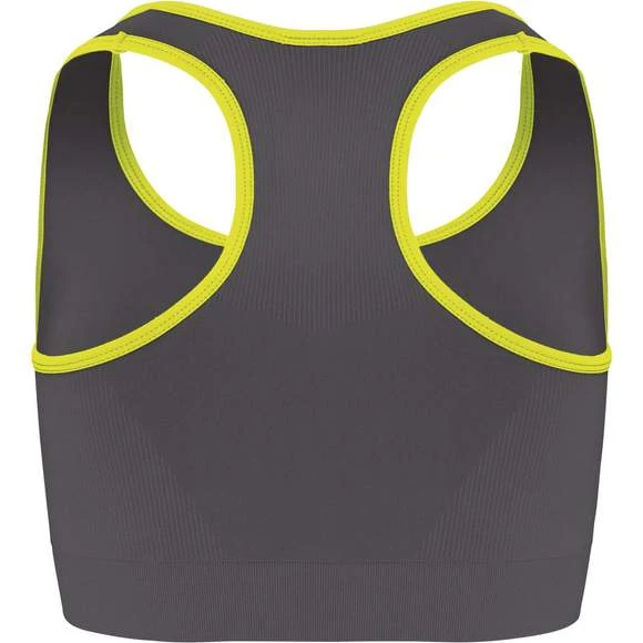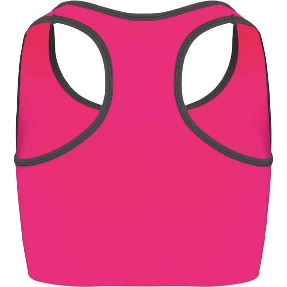 94% polyamide / 6% élasthanne. Dos nageur. Tissu doublé et tricotage ergonomique pour un excellent maintien et confort grâce à sa conception sans couture. Biais contrasté à l’encolure et aux emmanchures. Coupe étudiée pour une pratique multisports. Grammage : 180g/m²