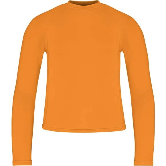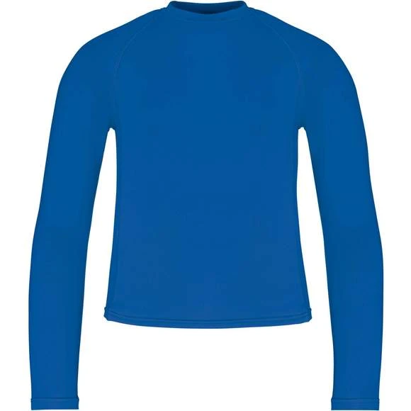 T-shirt double peau sport manches longues enfant : 88% polyester / 12% élasthanne. Tissu à séchage rapide. Encolure ronde. Points de recouvrement ton sur ton. Finition double aiguille bas de manche et de vêtement. Grammage : 200g/m²