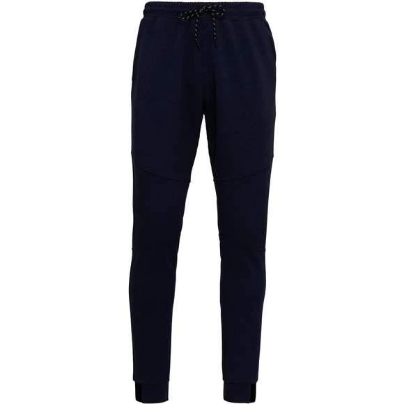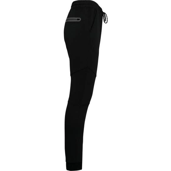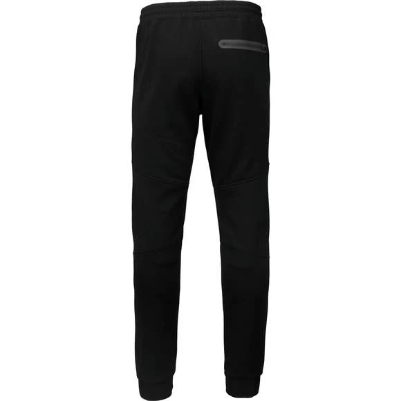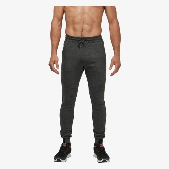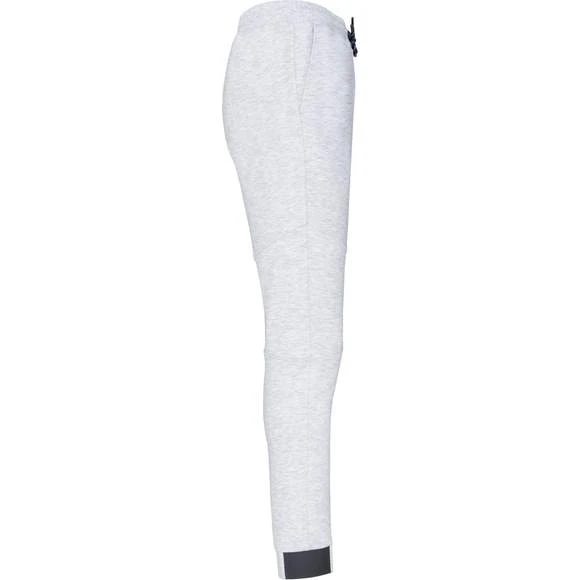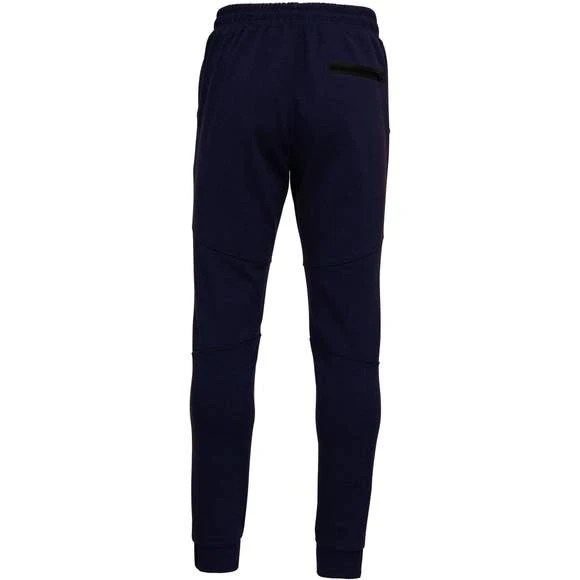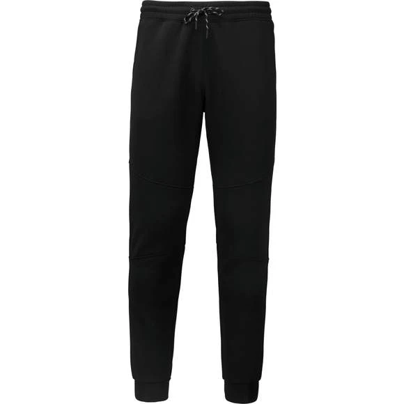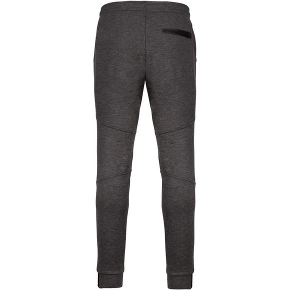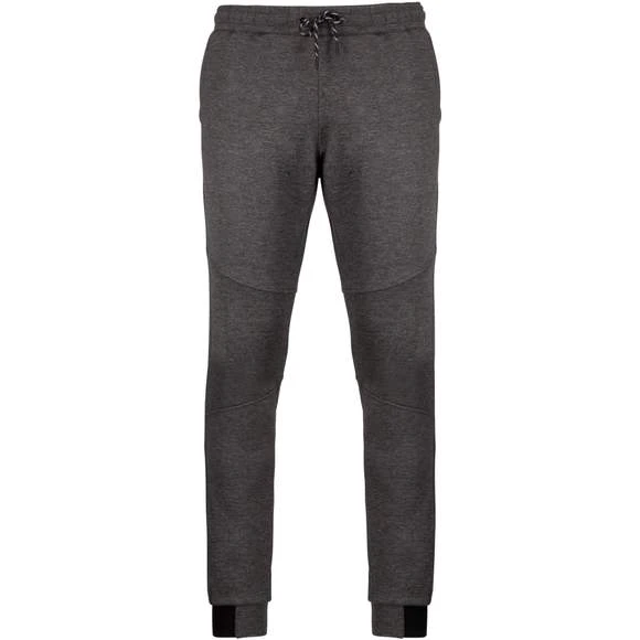 94% polyester / 6% élasthanne (79% polyester / 15% viscose / 6% élasthanne pour coloris chiné). Matière ultra confortable. Ceinture élastiquée avec cordon de serrage bicolore finition embout plastique. 2 poches devant doublure jersey 65% polyester / 35% coton et 1 poche arrière zippée finition thermosoudée. Coupe moderne et ajustée avec empiècements genoux. Bas de jambes resserré avec une partie élastiquée contrastée. Grammage : 310g/m²