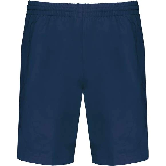 Short sport : 100% polyester à séchage rapide. 2 poches côtés. Taille élastiquée avec cordon de serrage. Doublé maille filet. Découpe côté ton sur ton. Grammage : 100g/m²