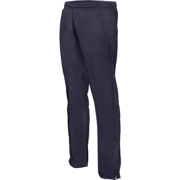Pantalon de survêtement : 100% polyester diamond. Tissu à séchage rapide et. Entièrement doublé filet. Ceinture élastiquée avec cordon de serrage. 2 poches zippées côtés. Bas de jambe zippé. Grammage : 105g/m²