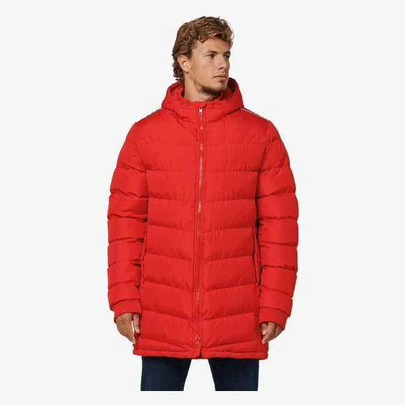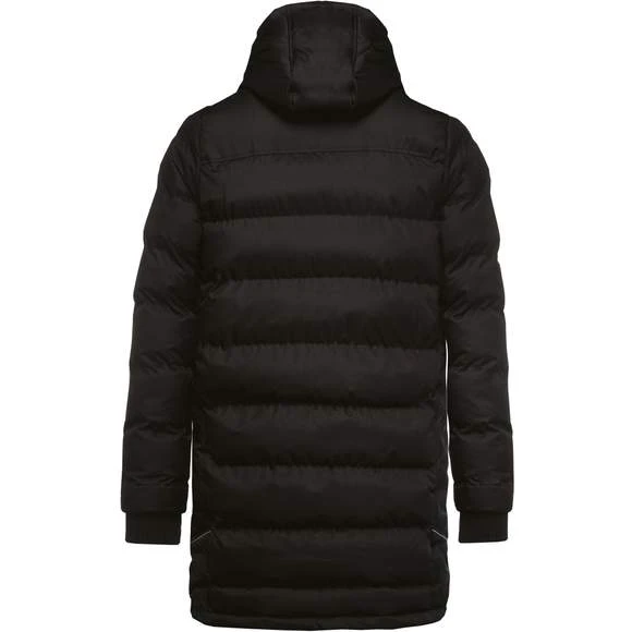 Extérieur : 100% polyester 200 g/m² avec enduction PVC. Garniture intérieure 100% polyester 350 g/m². Doublure 100% polyester 60 g/m². 2 poches latérales zippées. 1 poche intérieure. Col et bas de manches en bord-côte. Biais réfléchissants épaules et côtés. Capuche doublée. 1 zip côté cœur et 1 zip au bas du vêtement pour accès personnalisation. Grammage : 200g/m²