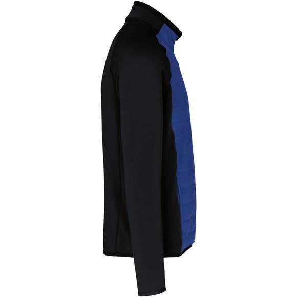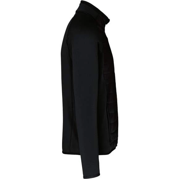 Extérieur : corps 100% polyamide ripstop, manches et dos 90% polyester / 10% élasthanne. Garniture intérieure 100% polyester. Matière ultra confortable avec traitement déperlant. 2 poches zippées devant. Fermeture zippée contrastée. Biais élastiqué au col, bas de manches et de vêtement.