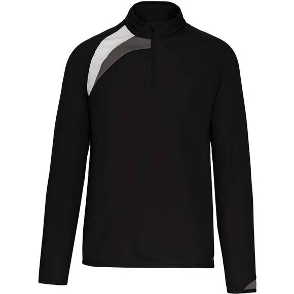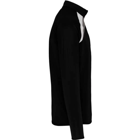100% polyester polytricot gratté. 1/4 zip. Empiècements contrastés corps et bas de manche. Coutures en points de recouvrement ton sur ton. Bas de vêtement et manches avec bande élastique. Grammage : 160g/m²