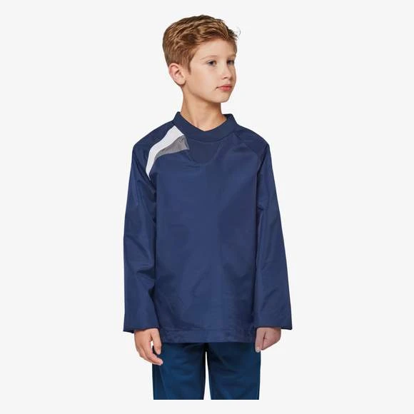 100% polyamide Oxford, enduction polyuréthane PU. Déperlant. Encolure ronde avec col et empiècement bord-côte 1×1 pour faciliter le passage de tête. Manches raglan. Découpes contrastées corps et bas de manches. Bas de manches avec bande élastique. Grammage : 120g/m²