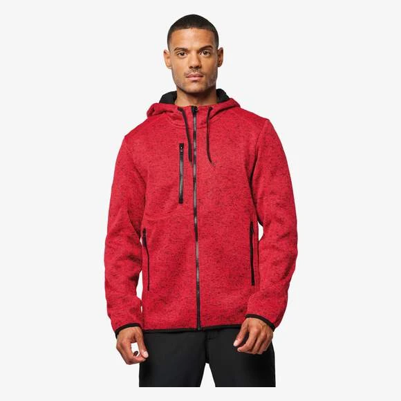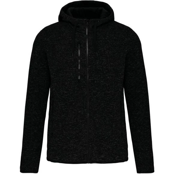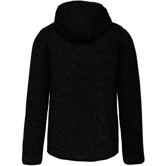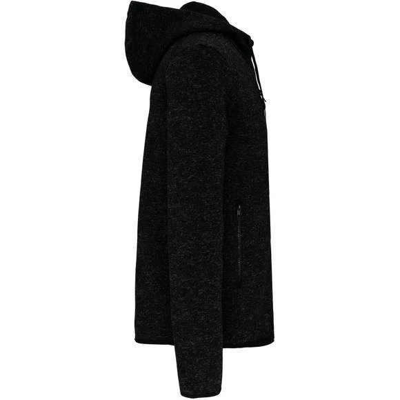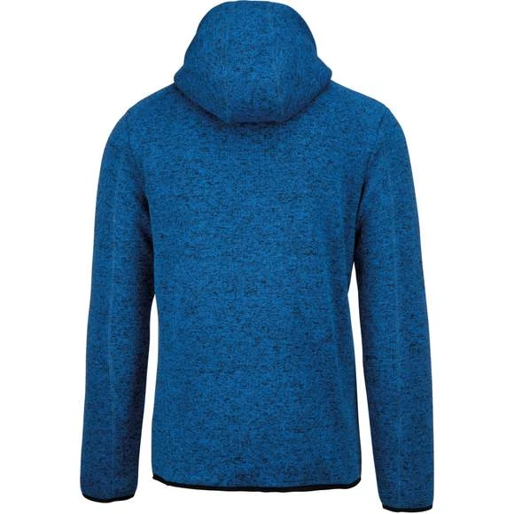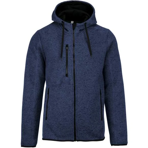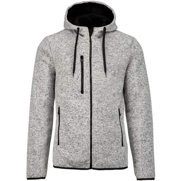 Tricot intérieur gratté 100% polyester. 2 poches devant zippées contrastées et 1 poche poitrine zippée contrastée. Capuche doublure contrastée jersey 100% coton avec cordon de serrage plat contrasté. Bas de manches et de vêtement avec finition biais contrasté élastiqué. Point de recouvrement sur les découpes. Grammage : 345g/m²