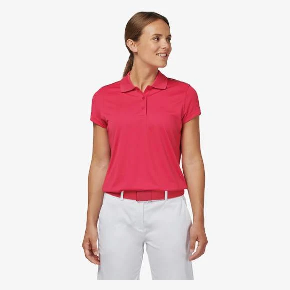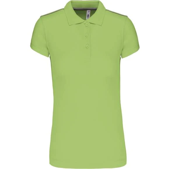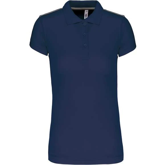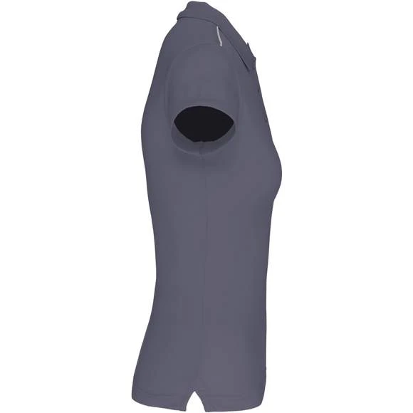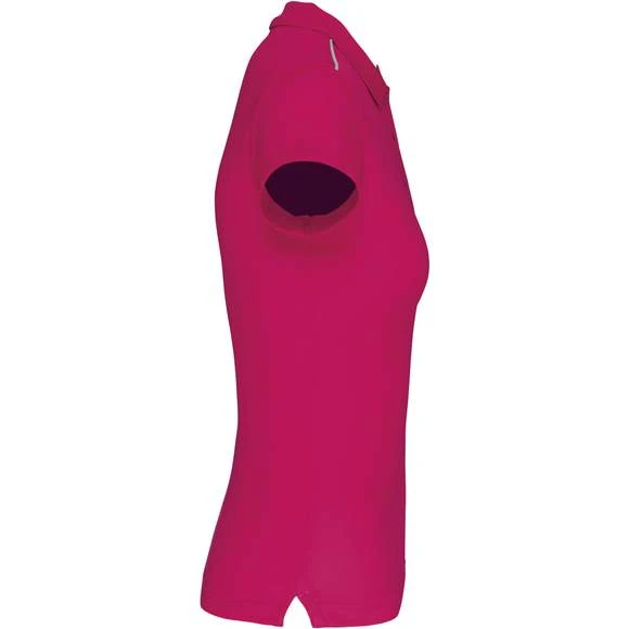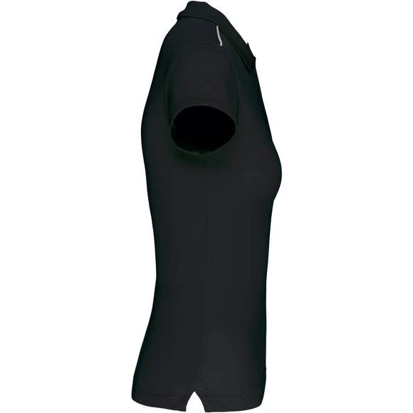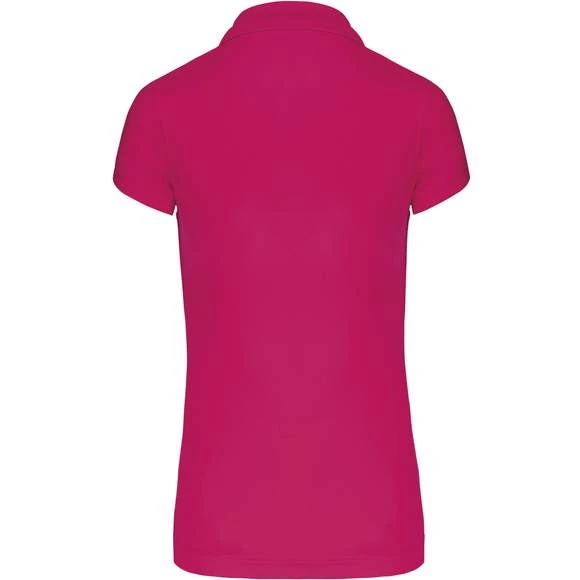 Polo manches courtes femme : 100% polyester interlock. Tissu à séchage rapide. Col en bord-côte. Patte de boutonnage 3 boutons. Bande de propreté contrastée encolure et fentes côtés. Passepoil contrasté épaules. Finition double aiguille bas de manches. Grammage : 155g/m²