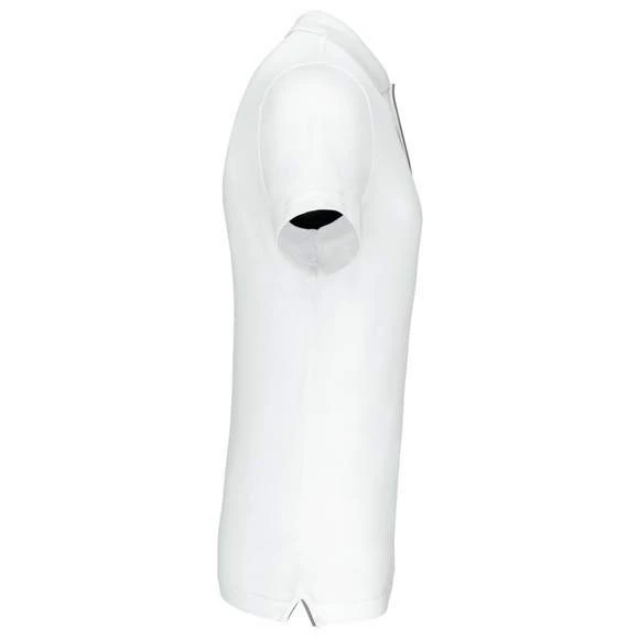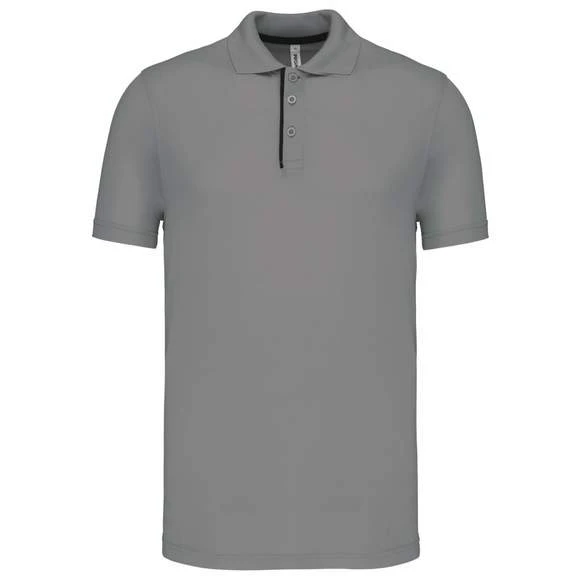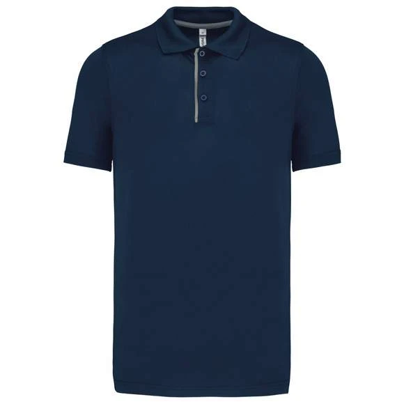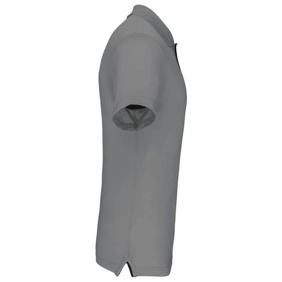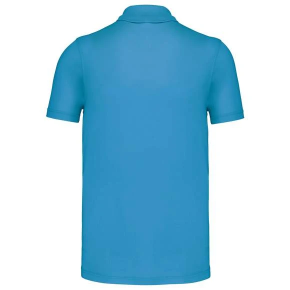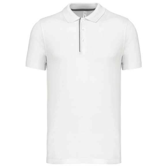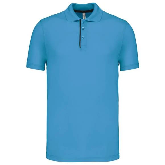 Polo maille piquée sport manches courtes : 95% polyester / 5% lycra®. Tissu respirant à séchage rapide. Maille piquée. Col en bord-côte. Patte de boutonnage avec 3 boutons et passepoil contrasté. Bande de propreté contrastée à l’encolure. Grammage : 180g/m²