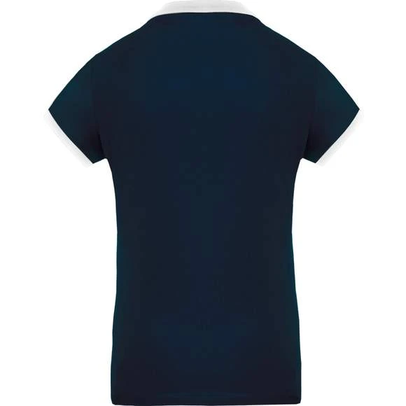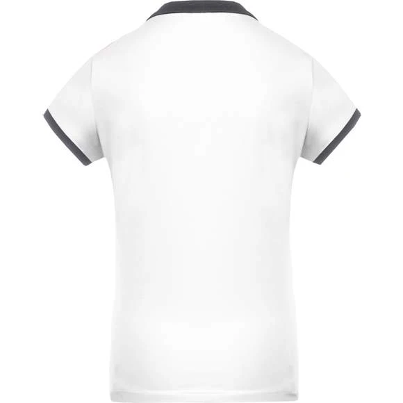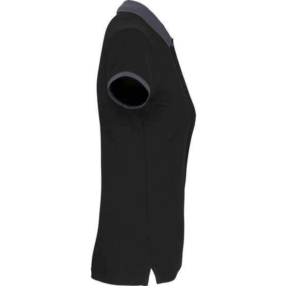100% polyester. Maille piquée Cool Plus®. Tissu à séchage rapide. Coupe cintrée et look moderne. Col et bas de manche en bord-côte contrasté. Patte de boutonnage 4 boutons contrastés. Fentes latérales. Grammage : 180g/m²