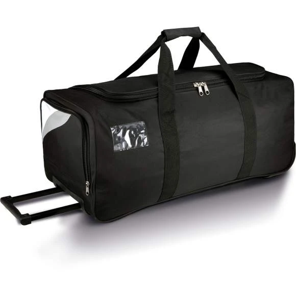 Sac de sport trolley grande taille 70cm en polyester 600D, grande ouverture sur le dessus, compartiment range chaussures sur le côté, lanières renforcées (largeur 5 cm) tout autour du sac. Dimensions : 71x31x30 cm.