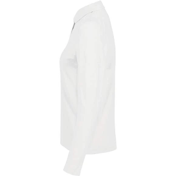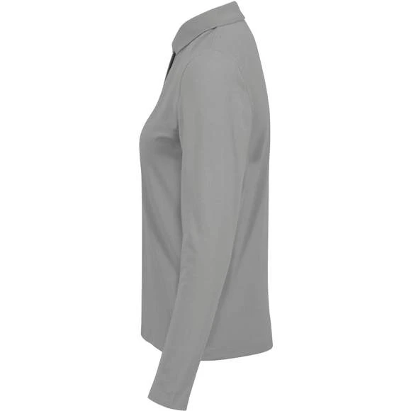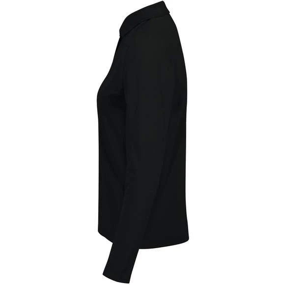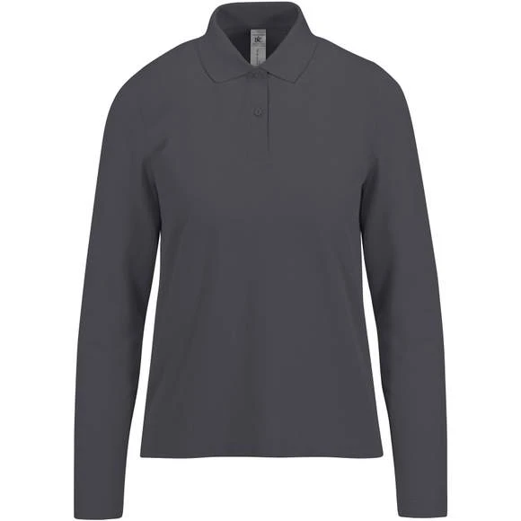 Polo à manches longues pour femme. Maille piquée. Plaquette renforcée 2 boutons. Col en bord côte 1×1. Coutures latérales. Boutons ton sur ton. Coutures aux épaules et bande de propreté au col. Composition : 100% coton pré-rétréci Ringspun (Sauf coloris Sport Grey : 90 % coton ring-spun pré-rétréci, 10 % viscose). Grammage : 180g/m²