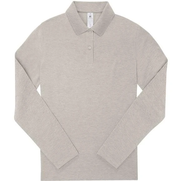 Polo à manches longues pour femme. Plaquette renforcée 2 boutons. Maille piquée. Coutures latérales avec fentes et bandes de propreté Herringbone. Col en bord côte 1×1. Boutons ton sur ton. Composition : 100% coton pré-rétréci Ringspun (Sauf coloris Sport Grey : 90 % coton ring-spun pré-rétréci, 10 % viscose / Heather Burgundy : 80 % coton ring-spun pré-rétréci, 20 % polyester / Heather Grey Fog : 80% coton ring-spun pré-rétréci, 20% polyester / Heather Blue : 80% coton ring-spun pré-rétréci, 20% polyester). Grammage : 210g/m²