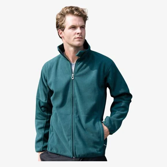 100 % polyester. Veste polaire coupe-vent, respirante et imperméable. Matière imperméable à 7000 mm et propriétés respirantes à 3000 g/m² par 24 heures. 2 poches zippées. Coupe confortable Grammage : 370g/m²