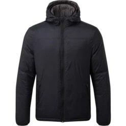 Veste en 100% polyester ripstop imperméable. Doublure matelassée polyester polaire et taffeta. Fermeture zippée avec rabat. Coutures thermo soudées. Capuche ajustable et amovible. 4 poches extérieures et 3 poches intérieures portefeuille, musique et GSM). Ouverture zippée sos les bras. Accès pour personnalisation.