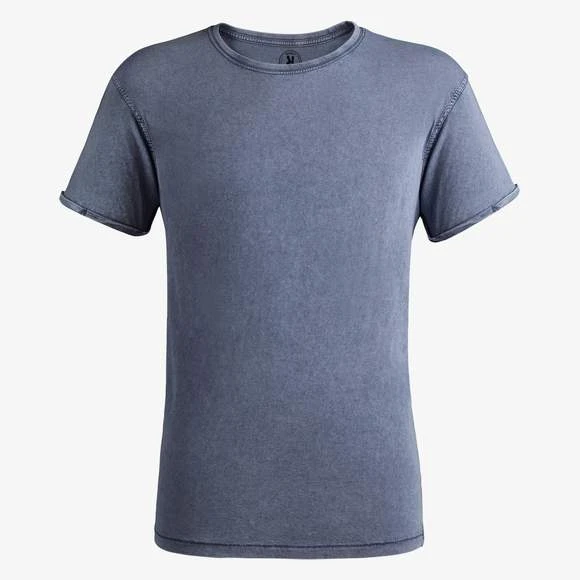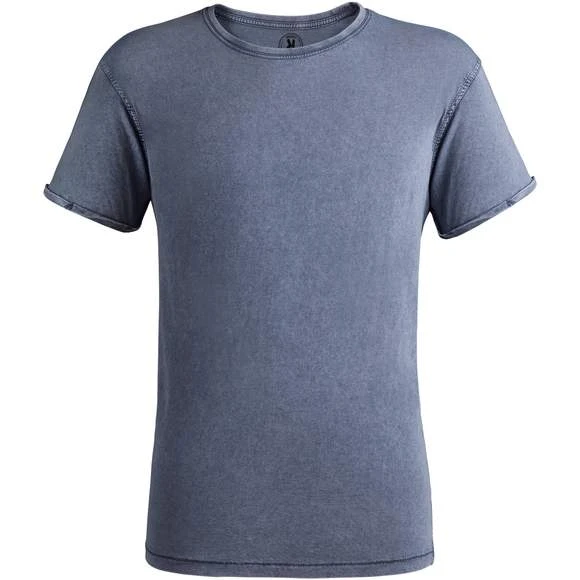 T-shirt manches courtes effet jeans. Col rond maille côte 1×1, avec bande de propreté à l’encolure d´épaule à épaule. Double couture sur emmanchures. Ouverture sur les manches avec ourlet. Étiquette adhésive. Duo concept. Composition : 100% coton peigné. Grammage : 160g/m²