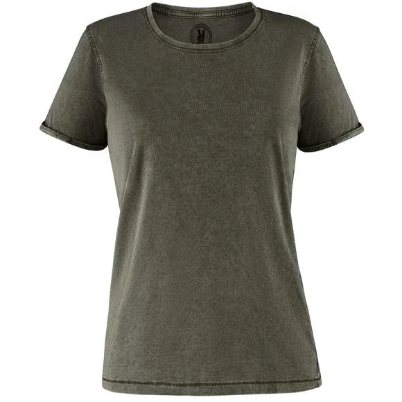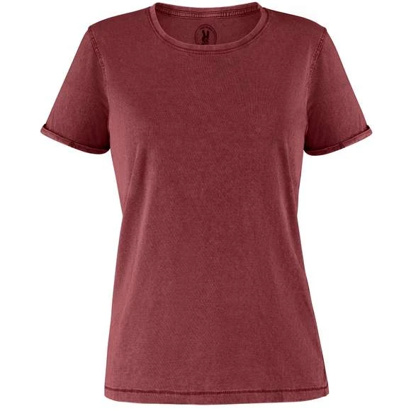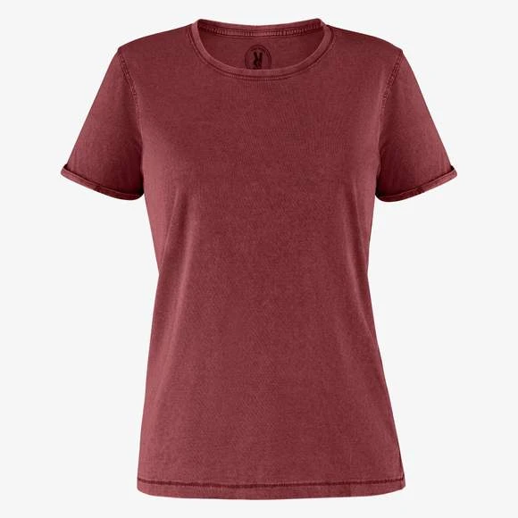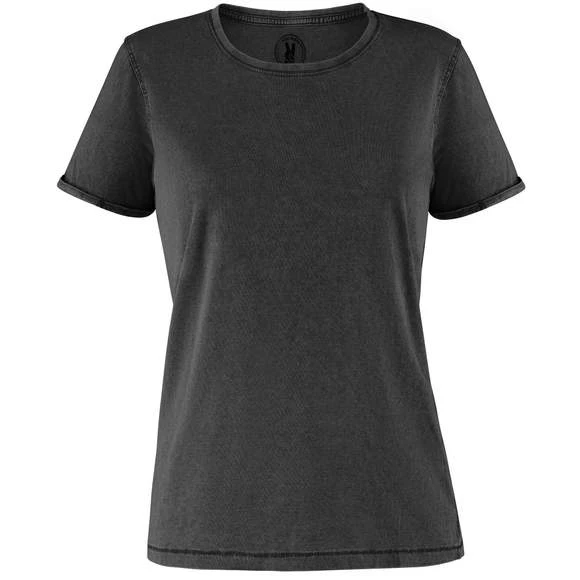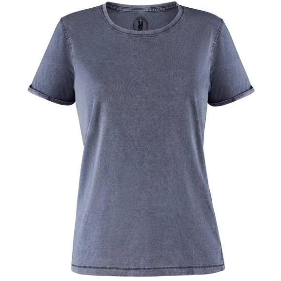 T-shirt manches courtes pour femme effet jeans. Col rond maille côte 1×1, avec bande de propreté d´épaule a épaule. Double couture sur emmanchures. Ouverture sur les manches avec ourlet. La finition et la tonalité de cette pièce peut varier tout en étant de la même commande. Étiquette adhésive. Duo concept. Composition : 100% coton peigné. Grammage : 160g/m²