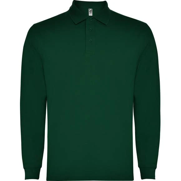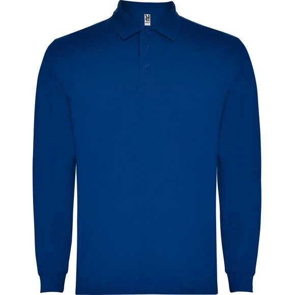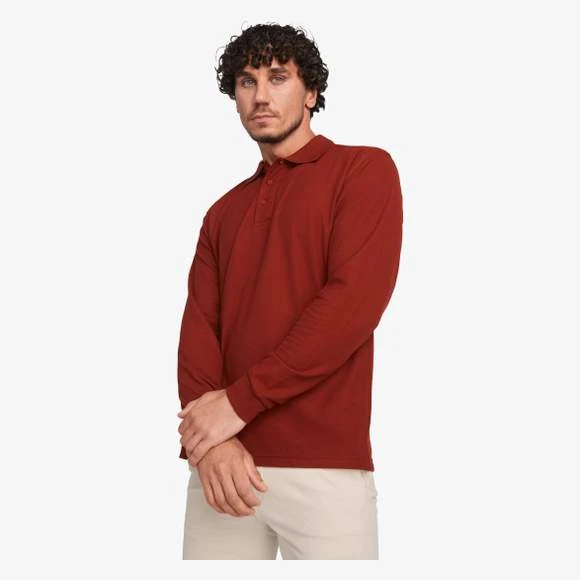Polo manches longues avec col et bord de manche en côte 1×1. Plaquette 3 boutons ton sur ton. Poignets avec élasthanne. Bande de propreté à l´encolure. 65% polyester/35 % coton, maille piquée, 220 grs/m². Grammage : 220g/m²
