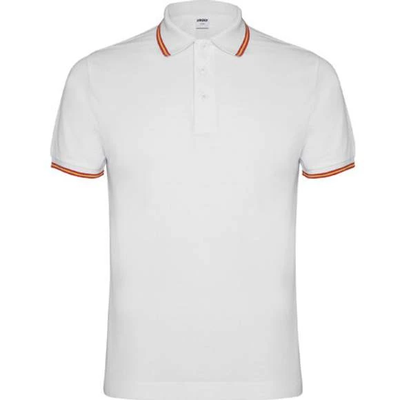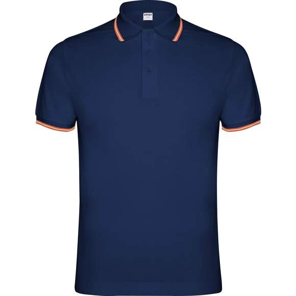 Polo manches courtes, col et bord de manches en jackard avec patte de boutonnage 3 boutons. Bande de propreté a l´encolure. Détail drapeau brodé dans le dos. Poche optionnelle. Étiquette détachable. Composition : 65% polyester / 35% coton. Couleur: 190 g/m². Grammage : 210g/m²