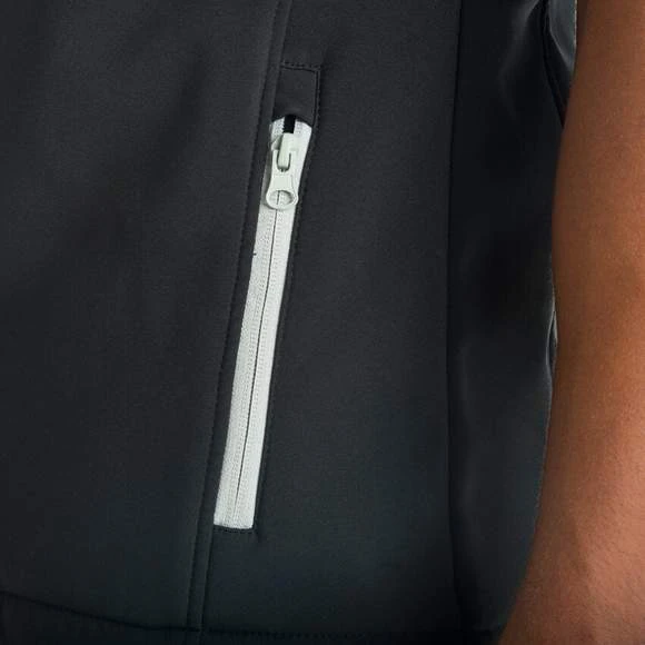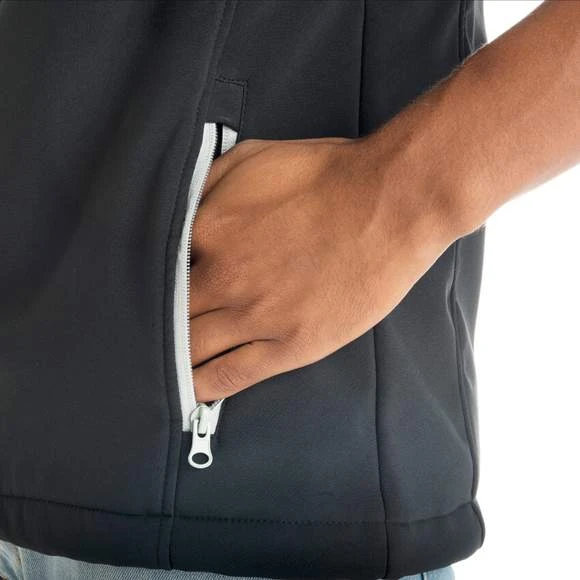 Gilet soft shell composé pour 2 capes, avec fermenute éclair ton sur ton sur toute la longueur, avec protecteur menton et curseur. Trois poches avec zip et curseur. Bas avec cordon élastique et stoppeurs. Extérieur: 92% polyester / 8% élasthanne.