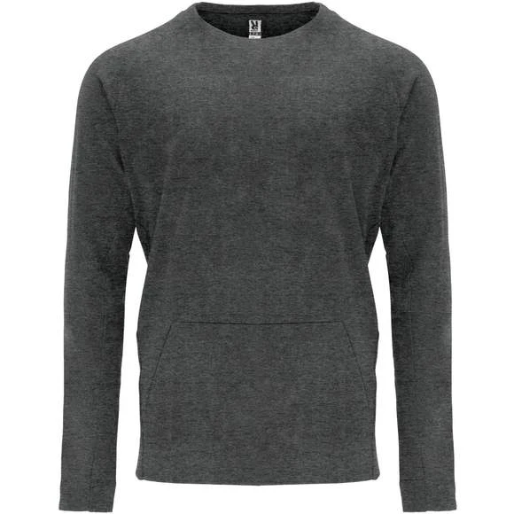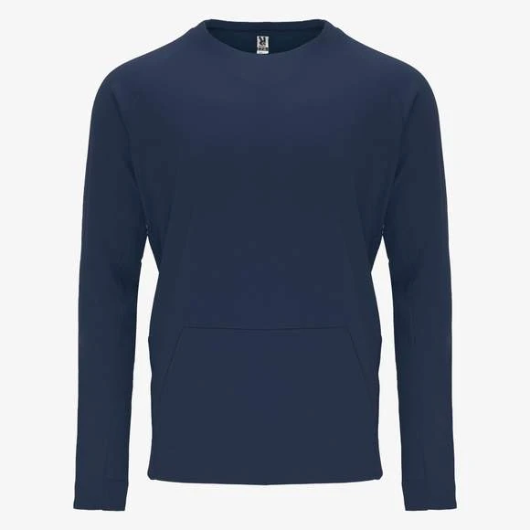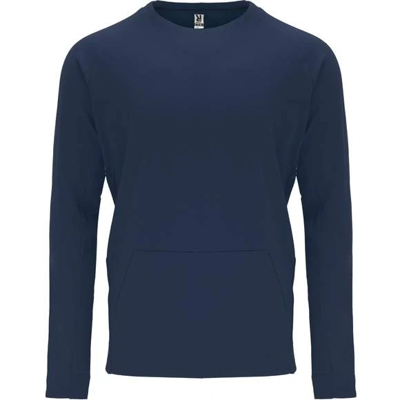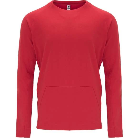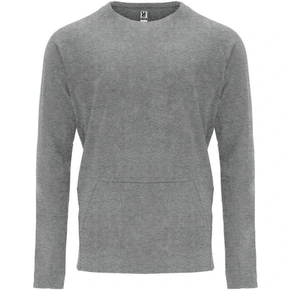 Sweat manches longues style raglan. Arrière du col et poignets en côte 1×1. Poche kangourou avec finition sans coutures. Coutures latérales en diagonales allant sur la partie frontale du sweat. Composition : 60% coton / 40% polyester. Grammage : 280g/m²