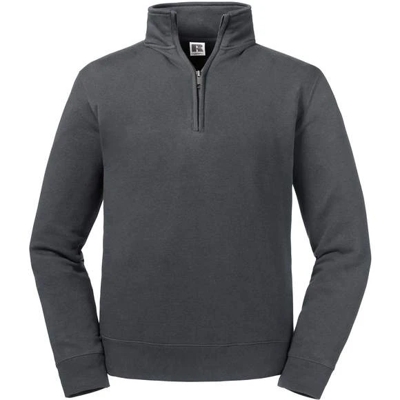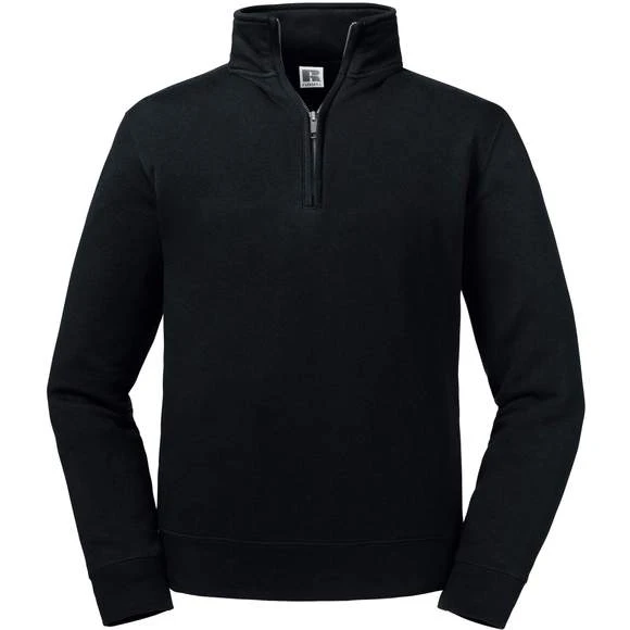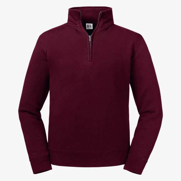 Sweat-shirt. Coupe moderne et ajustée. Face externe 100% coton pour une meilleure tenue. Bande de propreté en chevrons au col. Bord côte taille et poignets plus larges. Surpiqûres aux emmanchures, aux poignets et à la taille. Coutures latérales. Col officier de la même matière. Fermeture éclair 1/4 YKK en métal (Argent antique) Composition : 80% coton peigné ringspun/20% polyester.
