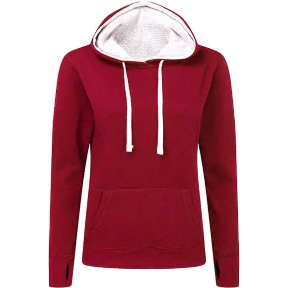 Avec sa qualité, son confort et son style, ce sweat à capuche à la coupe féminine est idéal. La doublure gaufrée de la capuche de couleur contrastée, la bande de propreté et le cordon de serrage ajoutent un style urbain à cet incontournable des garde-robes. À la mode et polyvalent. Capuche doublée, intérieur gaufré contrasté. Bande de propreté contrastée (assortie à l`intérieur de la capuche). boucles écouteurs contrastées (assorties à l`intérieur de la capuche). Surpiqûre 5 points pour un look contemporain. Cordon plat de même couleur que l`intérieur de la capuche. Poche MP3 à l`intérieur de la poche kangourou. Orifice pour le pouce en bout de manche. Composition : 80% coton peigné ringspun, 20% polyester (sauf coloris Light Oxford: 70% coton, 30% polyester). Grammage : 280g/m²