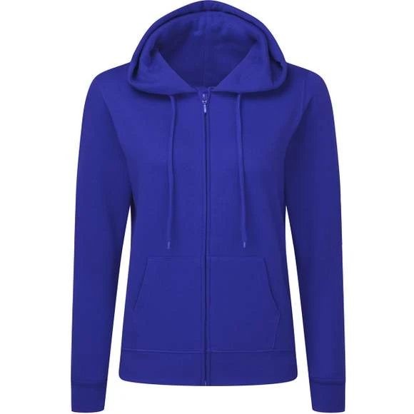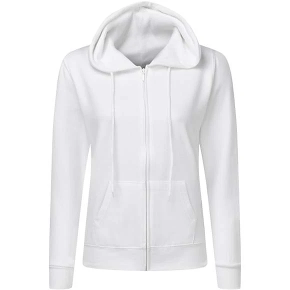 Polyvalent et pratique, ce sweat à capuche zippé à la coupe féminine avec poches kangourou est le compromis parfait entre pull et veste décontractée. Fermeture à glissière de même couleur. Deux poches plaquées, manches set-in, coutures latérales. Bord côte à la taille et aux poignets. intérieur en tissu gratté. Composition : 80% coton ringspun peigné, 20% polyester (sauf coloris Light Oxford : 70% coton, 30% polyester). Grammage : 280g/m²
