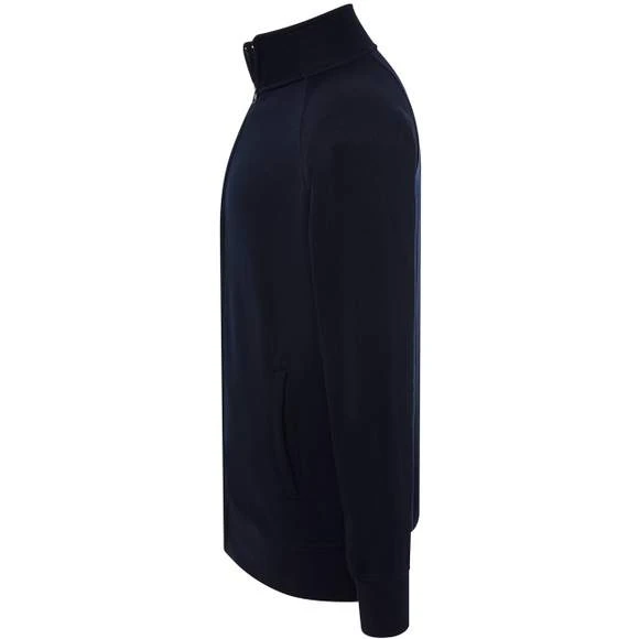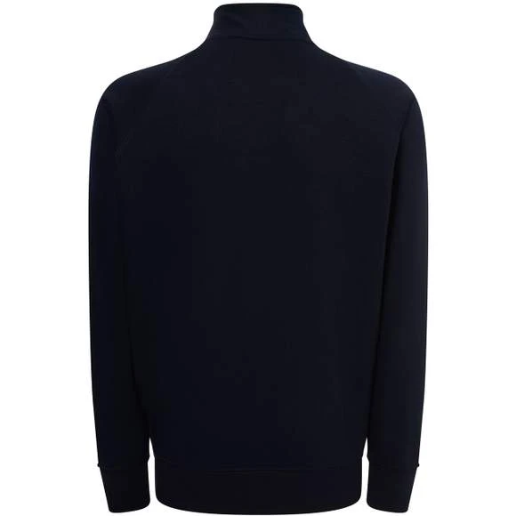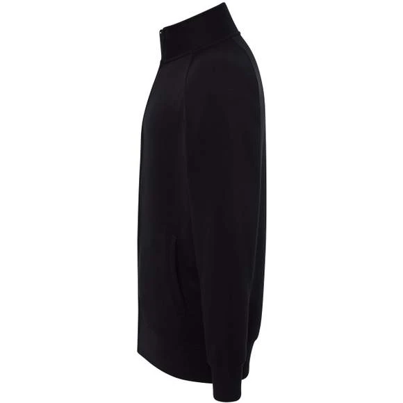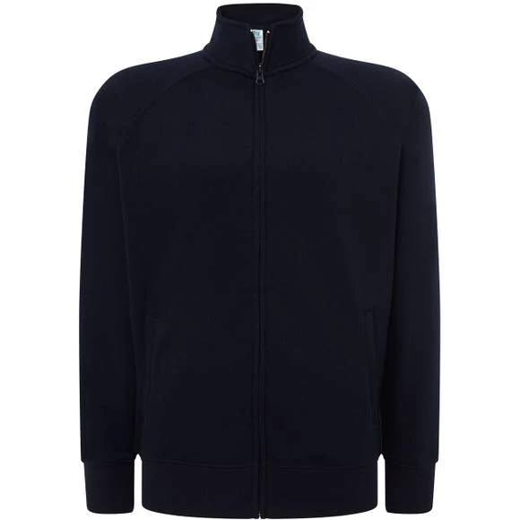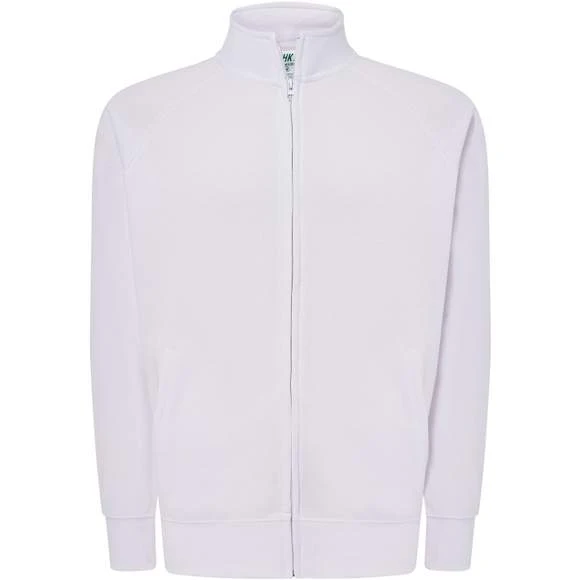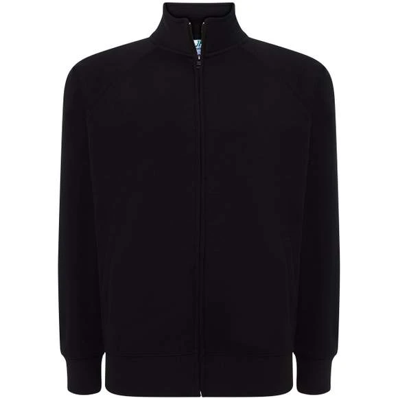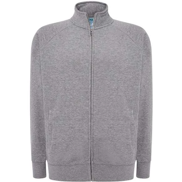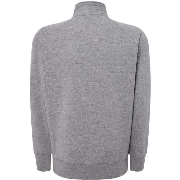 Sweat grand zip. Grand zip. Poches latérales. Bords côtes manches et taille en lycra côte 1×1. Col montant. Manches raglan. Composition : 65% polyester/35% coton