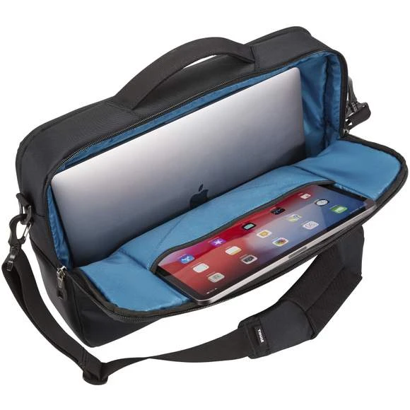 Sac d’ordinateur portable doté d’un compartiment principal zippé avec une housse pour ordinateur portable de 15,6″ matelassée et une housse pour tablette de 10″. Comprend un compartiment interne spécial pour ranger l’appareil et les chargeurs de façon séparée, une poche intérieure rembourrée pour protéger téléphone, lunettes de soleil ou autres objets de valeur, ainsi que plusieurs poches internes, au niveau des panneaux avant et arrière. Avec passant, panneau arrière rembourré et bretelles amovibles et matelassées. Résistant à l’eau. Nylon.