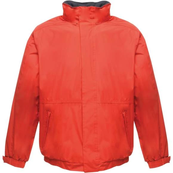 Veste Imperméable/coupe-vent, coutures collées. Corps et col à doublure en molleton, 2 poches inférieures zippées. Composition : Polyester Hydrafort imperméable. Grammage : 295g/m²