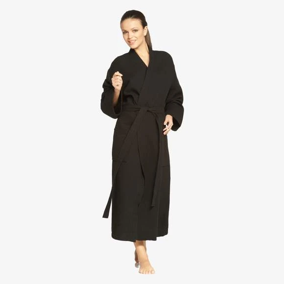 Peignoir kimono sporty. Tissu léger gauffré. Coupe unisexe. 2 poches avant. Ceinture. Composition: 100% coton. Grammage : 290g/m²