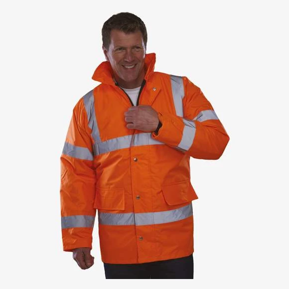 100 % polyester, veste de sécurité avec bandes horizontales et verticales réfléchissantes devant et dos, col avec capuche intégrée, fermeture à glissière complète et rabat, poche intérieure et poches de côtés. Hi-Vis Yellow = EN 471 classe 3. Grammage : 100g/m²